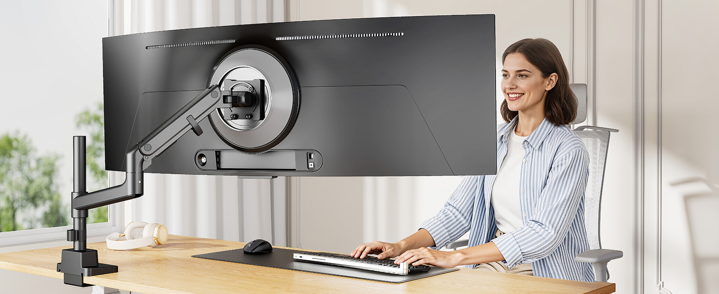 - 【Functional & Space-Saving Design】This ultrawide monitor mount combines practical functionality with a space-saving structure, offering smooth, effortless adjustability for gaming setups, professional workstations, and compact office spaces. Its versatile design ensures outstanding performance and flexibility, making it an ideal addition to any environment.