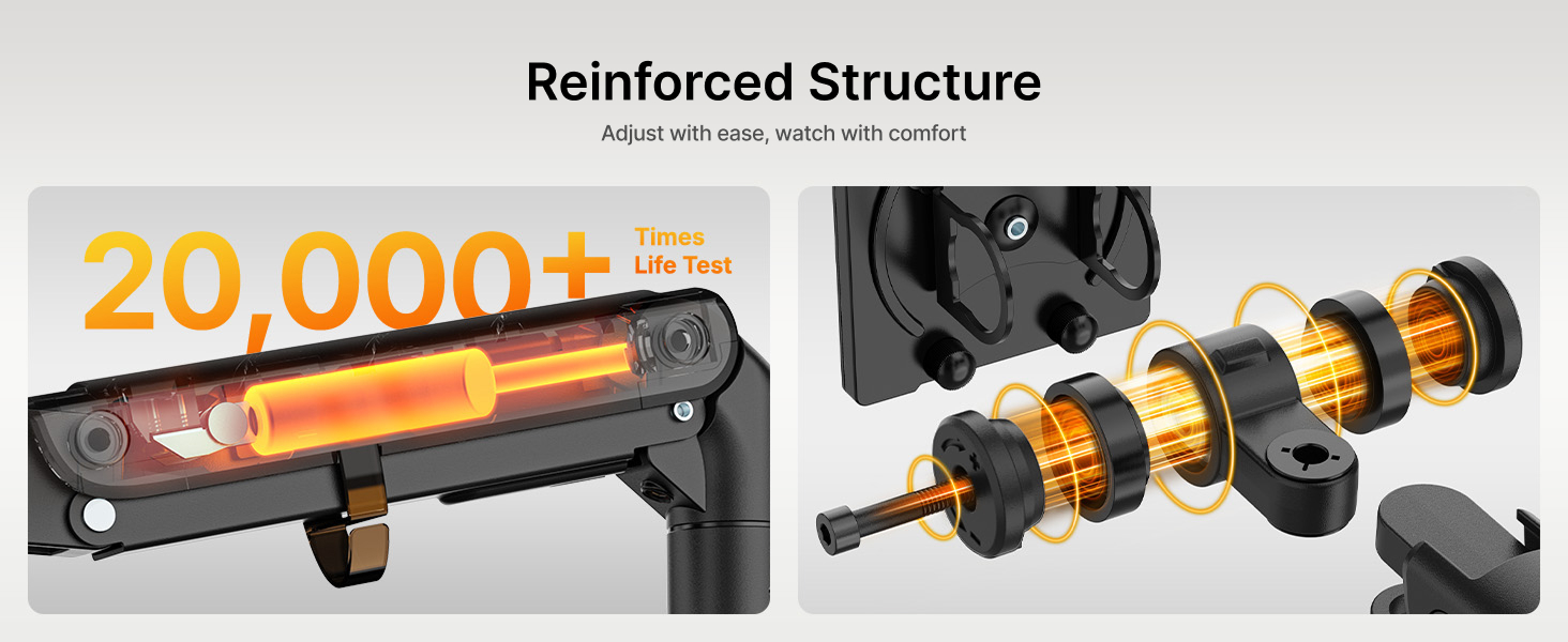 - 【Upgraded Build for Superior Stability & Flexibility】Built from premium steel and aluminium, this ultrawide monitor arm features an upgraded gas spring mechanism tested for over 20,000 cycles. The robust design reduces wobble and supports smooth 360° adjustments, offering maximum flexibility and consistent performance.
