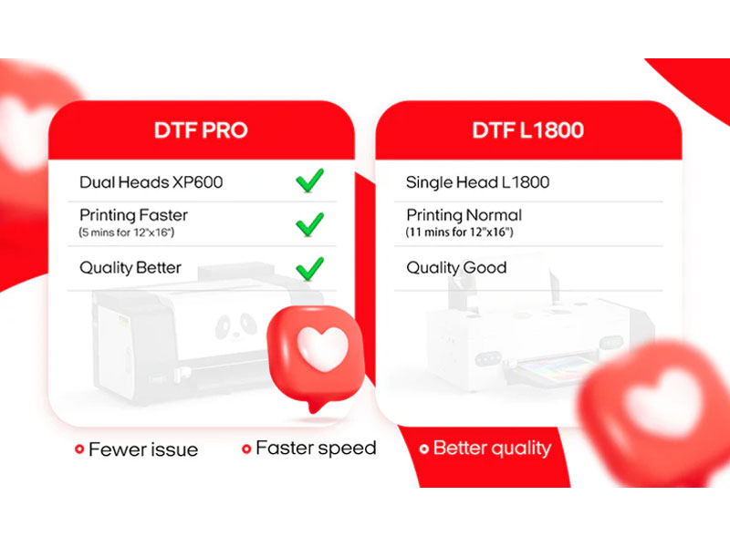 The DTF Pro Printer Gen 2 is a massive upgrade to the DTF L1800. It offers a more powerful and efficient printing experience, ensuring continuous, high-quality prints while minimizing maintenance.