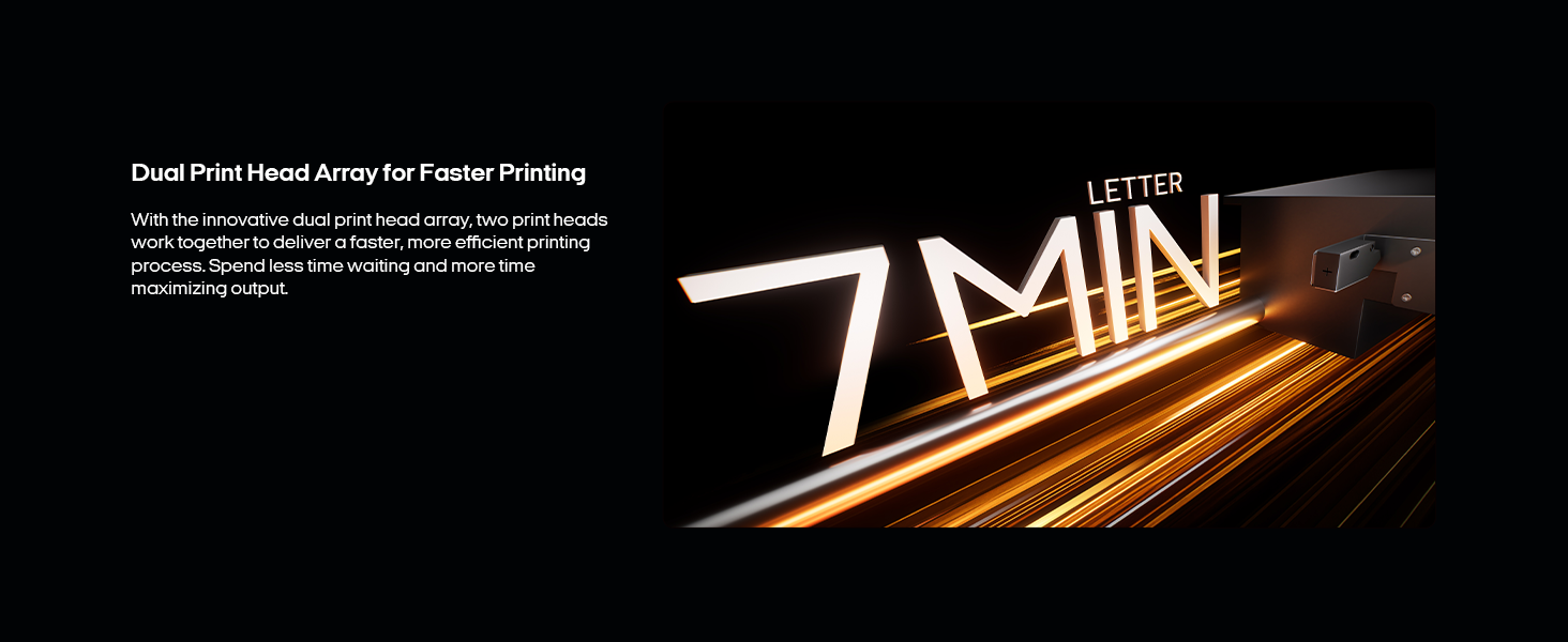 Two XP600 print heads work together to achieve a faster and more efficient printing process. The printing speed is twice that of the L1800 single-head printer.