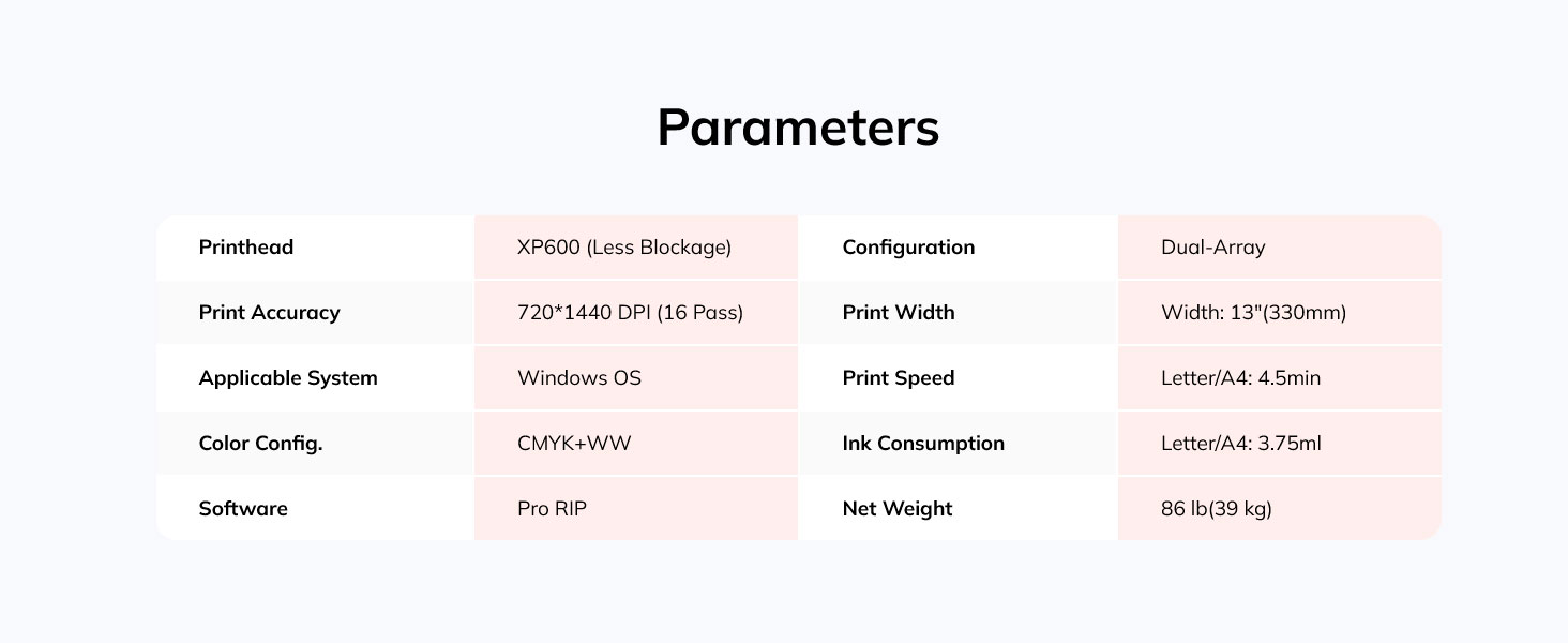 - Fast High-Resolution Printing – Dual XP600 Printheads: Upgraded DTF printer with dual XP600 printheads, printing in CCMMYK+6 White Ink (WWWWWW) color configuration. Achieves up to 2800×1400 dpi resolution for ultra-crisp detail. Max printing width: 33cm, A3 size takes only 5 minutes—2X faster than single-head models. Ideal for professional and bulk printing.