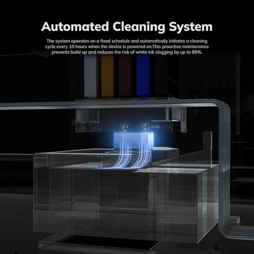 The system operates on a fixed schedule and automatically initiates a cleaning cycle every 10 hours when the device is powered on. This proactive maintenance prevents build up and reduces the risk of white ink clogging by up to 85%.