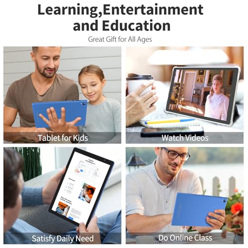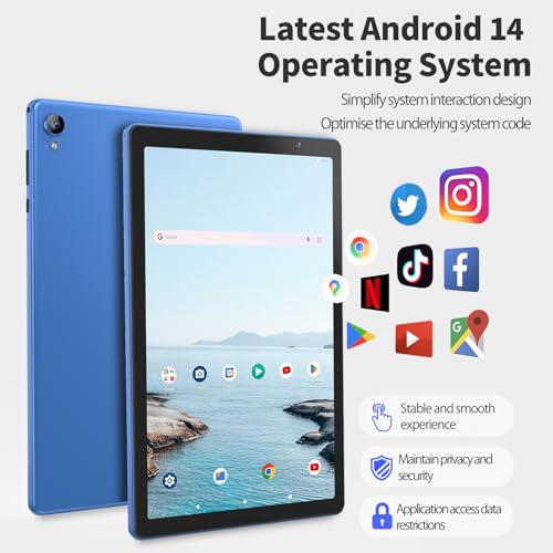 - 【Latest Android 14 tablet & GMS certification】Android tablet features a robust quad-core processor with up to 1.6GHz. Android 14 tablet delivers quick app launches, smooth games and videos . You can not only experience stable and smooth Google services, but also install your favorite third-party applications such as LINE/Netflix/YouTube/Facebook/Tiktok.
