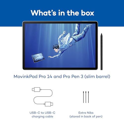 Wacom MovinkPad Pro 14 Drawing Tablet – Pen-on-paper feeling with an OLED screen for True Blacks, Exceptional Contrast, Fast Response, Premium Texture Glass, Ultra-Precise Pro Pen 3 for Creatives