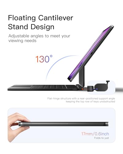 - Stable Magnetic Floating Stand: Thanks to the magnetic floating mechanism, it transforms your iPad into a laptop in seconds. It features the same flat hinge as the original, providing even more stable support for your iPad. The aluminum alloy hinge allows 130-degree angle adjustment for a comfortable typing experience. The stand is portable and easy to carry, ideal for travel, business trips, and study