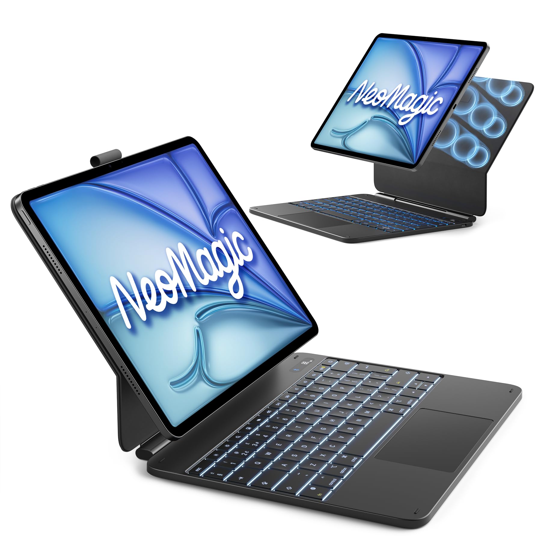 Inateck NeoMagic Magnetic Keyboard Case for iPad Air 13 inch M3/M2, iPad Pro 12.9 inch 6/5/4/3 Gen, Large Multi-Touch Trackpad, LED Power Display, 7 Color Backlight, with Pencil Holder, QWERTY, KB903