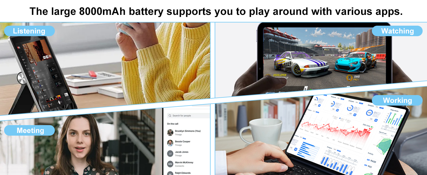 - 【10-inch Screen and 8000 mAh 】The S10 features an intelligent 10-inch IPS screen, which effectively enhances screen sensitivity and touch comfort. Provides clear, rich colors in different environments and filters blue light. The tablet features 5MP + 8MP front and rear cameras for video calls with family, friends and colleagues. The 8000 mAh provides enough power to run the tablet.