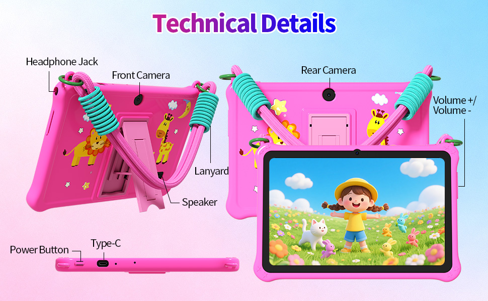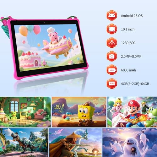 - Power and Efficiency: Equipped with a powerful Quad-core CPU.With 64GB of built-in storage (expandable up to 1TB),our tablet provides smooth performance and ample storage for apps, games, and media. The 6000mAh battery ensures long-lasting usage, allowing your child to stay engaged and entertained throughout the day. With the latest Android 13 operating system, your child will enjoy a secure and up-to-date user experience.
