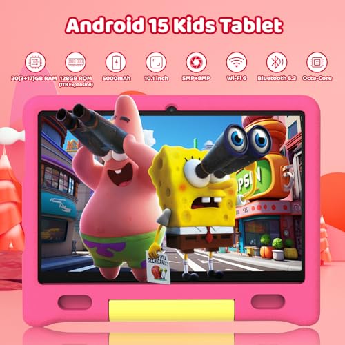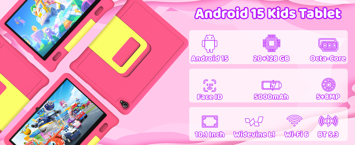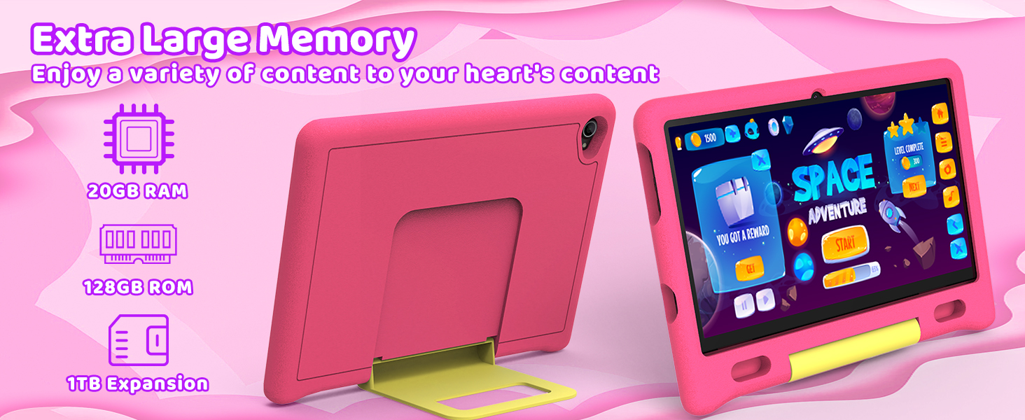 - 【Android 15 tablet with 20(3+17)GB+ 128GB +1TB】The 10.1 inch kids tablet has undergone significant upgrades, featuring customizable, user-friendly settings and enhanced privacy controls tailored for young users. Powered by Android 15, this kids tablet is equipped with 20GB RAM and 128GB internal storage (ROM)—ample space to store your child’s favorite movies, educational apps, interactive games, and precious photos. For even more storage flexibility, it supports expandable memory via a TF card (up to 1TB), providing extra capacity for additional content, files, and downloads to grow with your child’s needs.
