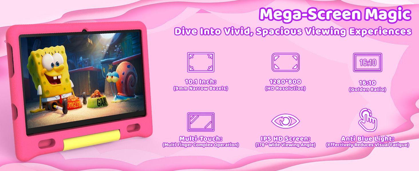 - 【Blue Light Filter Eye-Care IPS Display + Widevine L1】The tablet is designed specifically for kids' eye safety and seamless content access, reducing harmful blue light by up to 60% and protecting kids' vision during extended learning or play periods. The tablet is equipped with a high-definition IPS screen with a 178 ° wide viewing angle, providing clear and consistent visual effects from any position. It is also certified by Widevine L1 and seamlessly compatible with top child friendly streaming services (YouTube Kids, Disney+) and educational platforms, providing clear 1080p high-definition content for age appropriate videos, interactive courses, and more.