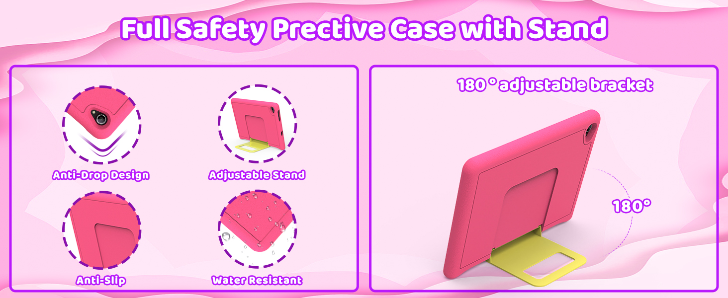 - 【Tablet Designed Specifically for Kids Daily Use & Learn】This tablet for kids is lightweight and easy to carry, equipped with a specialized shock-absorbing and anti fall shell that can effectively resist daily drops, collisions, and scratches. Built in adjustable bracket, paired with dual stereo speakers, 5MP+8MP dual cameras, and BT 5.3 and Wi Fi 6, providing a fully functional user experience that children can't resist. If you encounter technical issues while using the tablet, you can contact us at any time. It comes with a one-year warranty service.