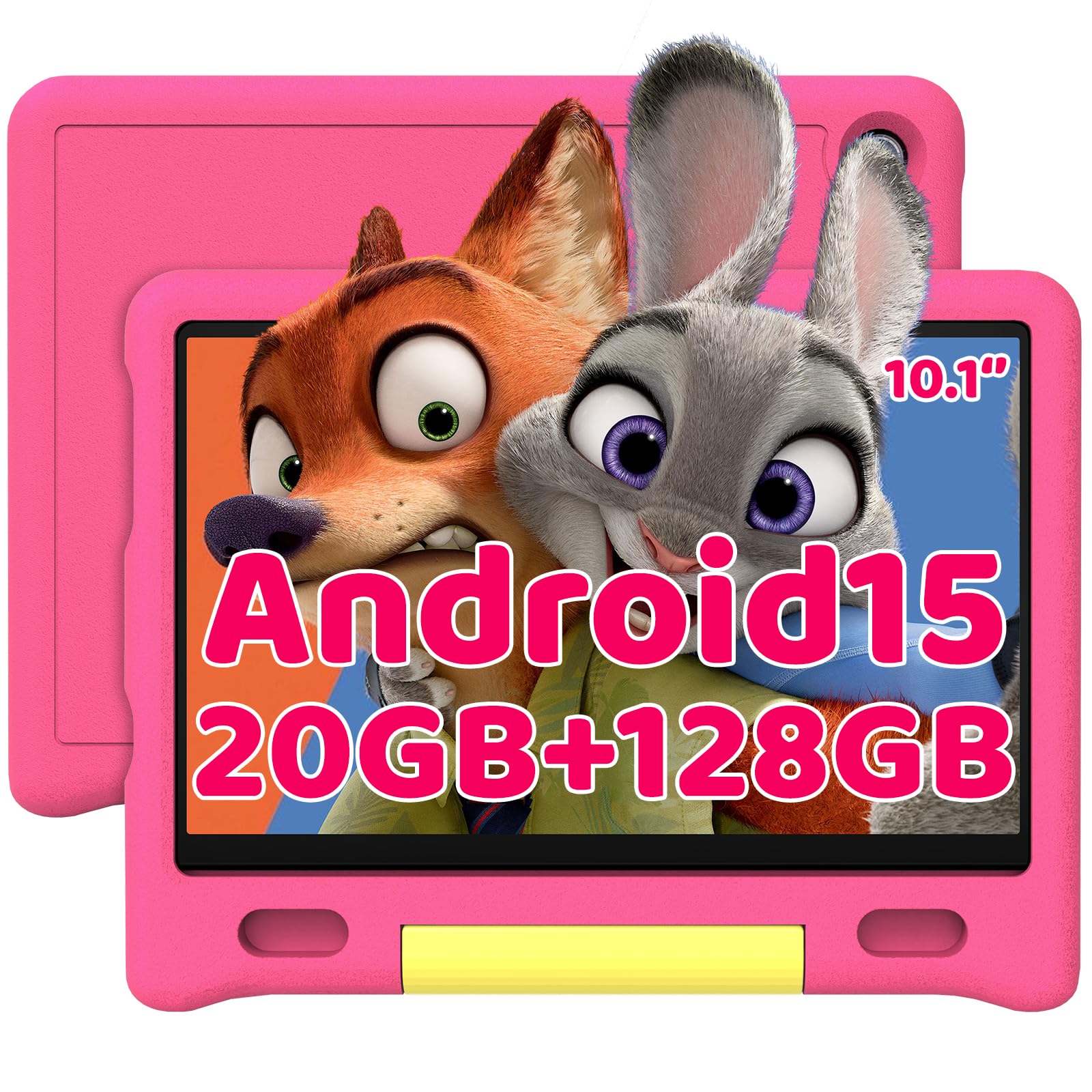 10 Inch Kids Tablet, Android 15 Tablet for Kids with 20GB+128GB+1TB Expand|Octa-Core|Face ID|5MP+8MP|Parental Control|WiFi 6|BT 5.3|Dual Speakers|Protective Case(Pink)