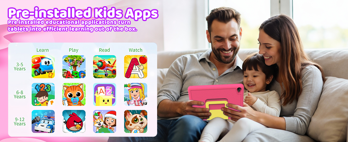 - 【Smart Parental Controls & Pre-installed kids Apps】Our Android 15 kids tablet is designed specifically for digital learning and gaming, with intuitive and powerful parental controls and pre-installed child friendly applications that integrate safety, convenience, and fun. This kid tablet can customize user profiles, set daily screen time limits, filter age appropriate applications/websites, and easily monitor activity logs. Let your children learn, play, and explore in a safe environment tailored specifically for them.