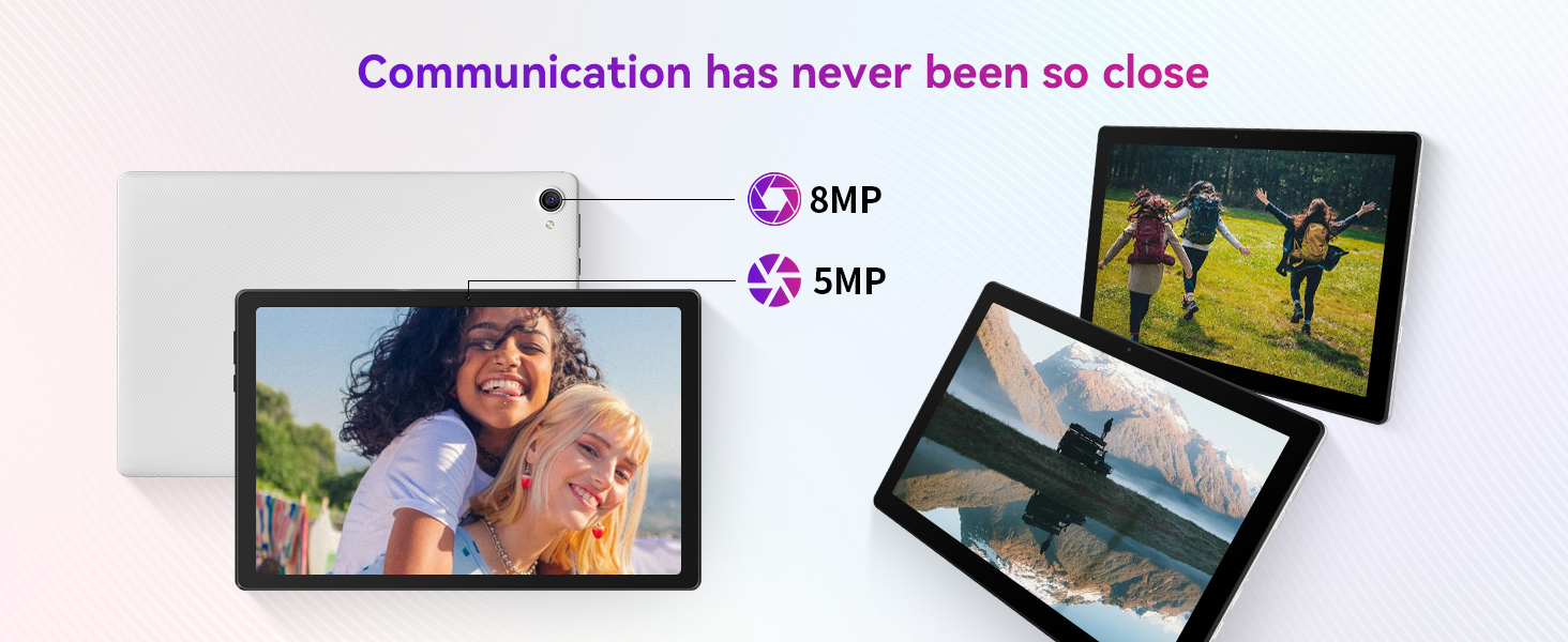 - Stay Connected and Capture Precious Memories: The android 15 tablets 10 inch equipped with an 8MP rear camera with autofocus and flash, plus a 5MP front camera, the C10 lets you take clear photos and join video calls with ease. Dual built-in speakers deliver crisp sound, while WiFi 6 and Bluetooth 5.3 ensure a stable connection for downloading or keeping in touch with loved ones.