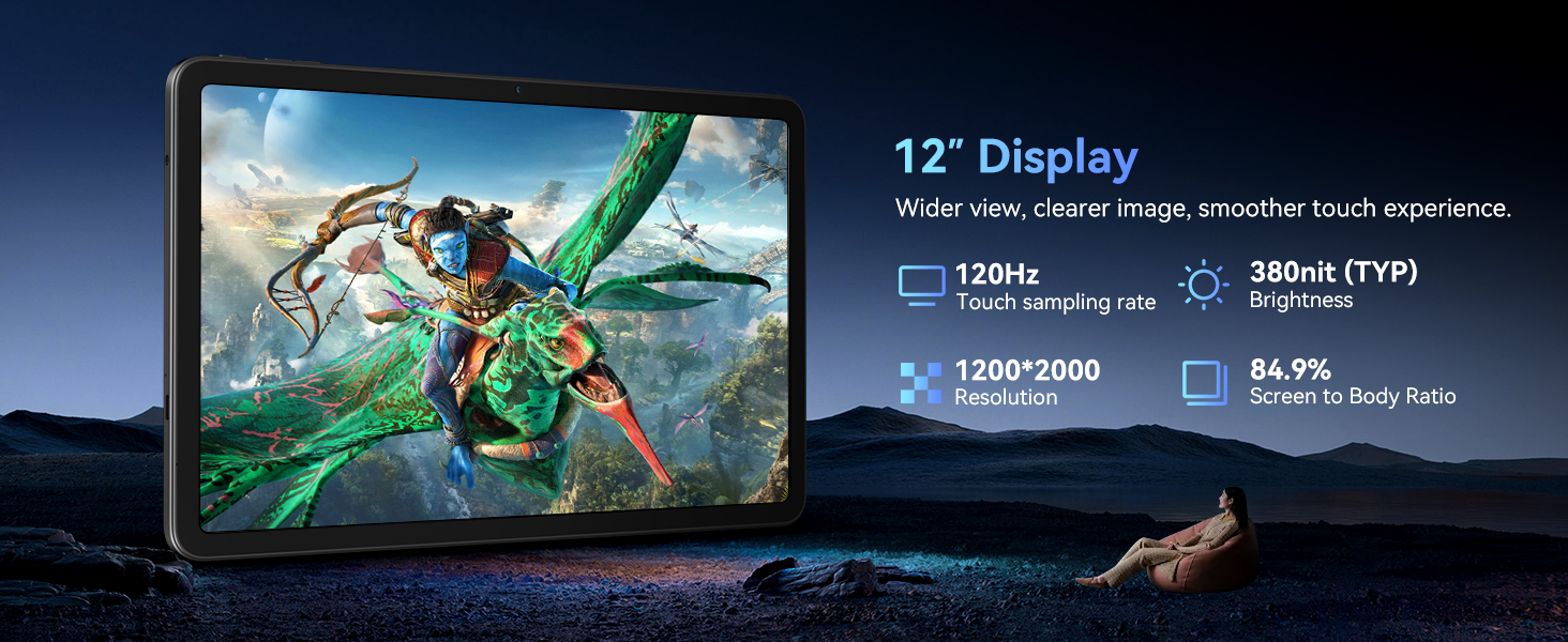 - [Immersive 12-inch 2K Display Tablet] It gives you a big, clear screen for both work and play. Review high-resolution blueprints, edit vibrant photos, or get lost in a cinematic masterpiece on an expansive 12-inch screen. The 2000*1200 resolution delivers the clarity and true-to-life color you need, transforming your visual tasks and entertainment