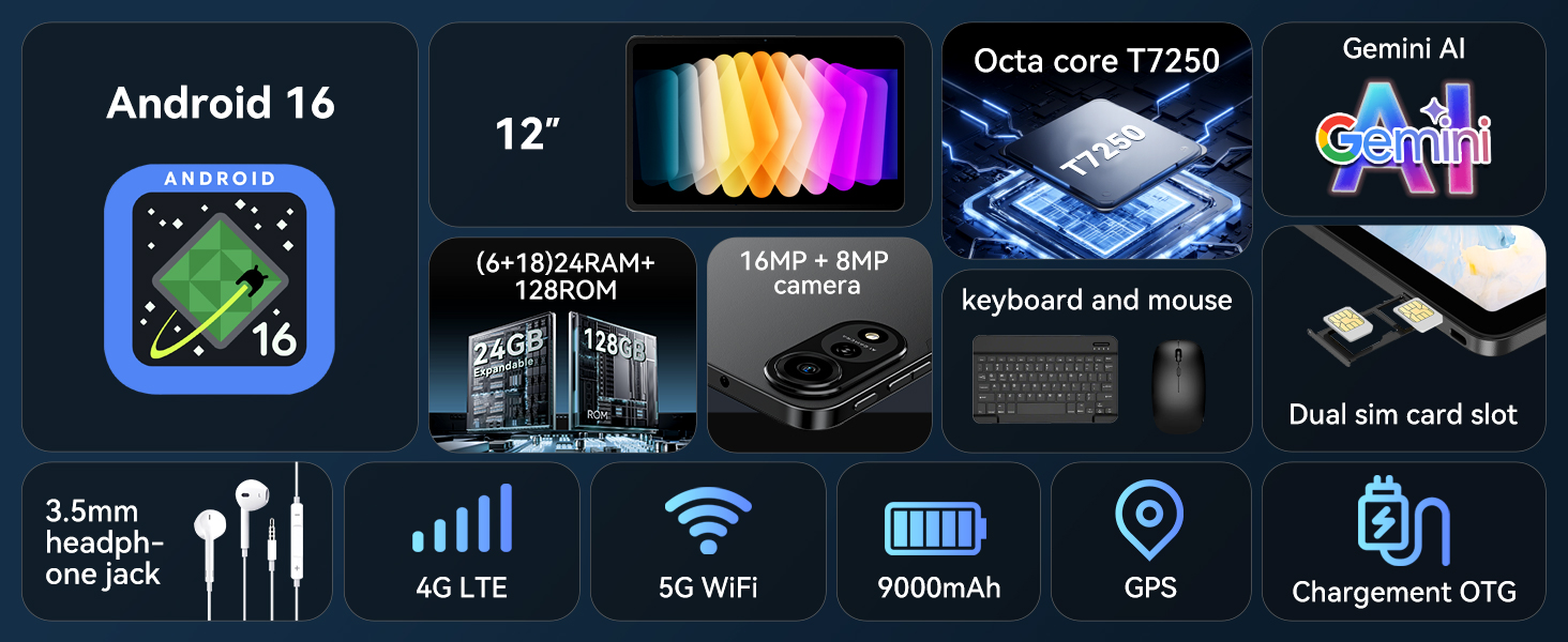 - [Native Android 16 Tablet with Dual 4G LTE] You get a reliable connection wherever you work. Whether you're presenting from a bustling café or uploading critical files in a taxi, our tablet’s seamless Dual 4G/5G and Wi-Fi switching ensures you stay online, productive, and in control—turning any location into a reliable, professional-grade office