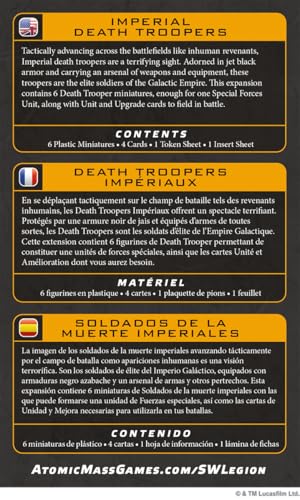 - This Unit Expansion for Star Wars: Legion includes six unit miniatures, Imperial Death Commandos, usable by Galactic Empire armies.