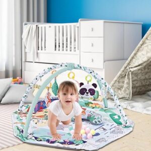Baby Gym Play Mat Washable Baby Activity Play Mat Mat with Detachable Activity Toys Lights Sounds and Music for Babies 0-12 Months Old Toddler Gym Ma ➡【Newborn Nurturer】: Nurture your babies' growth with our Gym Play Mat Ball Pit that comes with sensory toys. Its multipurpose design stimulates curiosity, cognitive, and motor skills. Use it as a ball pit or floor mat. Fully meet your newborn's growth and developmental needs with this versatile ➡【Early Development Essent-ials】: This play mat stimulates young children's vision, hearing, touch, and cognition as they explore the colorful balls, toys, and sounds. It also helps them...