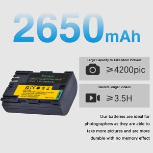 Uwayor 2-Pack LP-E17 Battery Charger Replacement Battery for Canon EOS RP Eos R10 T8i T7i T6i T6s SL2 SL3 EOS M3 M5 M6 EOS 200D 77D 750D 760D 800D 8000D Digital SLR Camera 【Standard Compatibility】 Complies with the exact specifications of LP-E17 batteries and Canon Eos RP, Eos R10,Rebel T8i, T7i, T6i, T6s, SL2, SL3, EOS M3, M5, M6, EOS 200D, 77D, 750D, 760D, 800D, 8000D, Digital SLR Camera. 【Battery Specifications】Capacity: 1400mAh, Voltage: 7.4V, environmental protection rechargeable and no memory effect. 1400mAh High capacity brings you longer video recording and more photo shooting. Ideal for travelling or other activities. 【Energy...