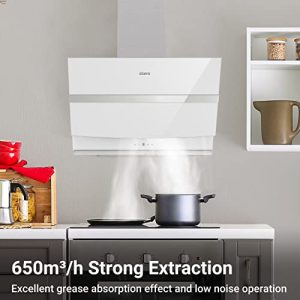 CIARRA Angled Cooker Hood 60cm ASW6736N Class A+++ 650m³/h Touch Control Wall Mount hood with Carbon Filters Recirculating&Ducting LED Lights 600mm Kitchen Extractor Fan [Energy Class A+++] ENERGY EFFICIENCY HOOD: compares to Class C models, this A+++ rating energy class kitchen extractor can save up to 80% of energy consumption. ULTRA-STRONG SUCTION POWER: Extraction rate up to 650m³/h but still so quiet at 58dB(A) low noise level,quickly effectively eliminate odour and vapour. TOUCH CONTROL WITH DISPLAY WINDOW: Sensitive operation panel with clear LED display window, you can see the speed level easily. DUAL WORKING MODES: Mounted on wall and ducted...
