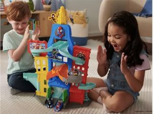 Spidey and his Amazing Friends 24″ Amazing Metals City Track Set: Multi-level Playset with 2 Race Tracks and 6 Die-Cast Vehicles Included + Gift Tag CITY TRACK: Race into adventure with the Amazing Metals City Track Set. HUGE PLAYSET: This multi-level playset stands at a towering 24-inches tall. NINE ACTION ZONES: Features two race tracks that wind through nine unique play zones. SIX VEHICLES: Also includes six die-cast 3-inch Amazing Metals vehicles. COLLECTIBLE SET: Track is inspired by the hit show Spidey and His Amazing Friends with authentic details true to the show. EASY GIFTING: Includes a gift tag to...